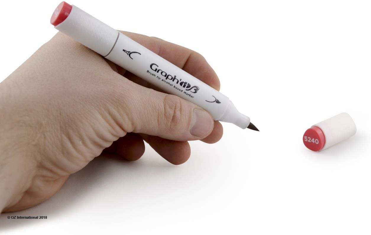 Graph´it apresenta a nova geração de marcador de álcool de ponta dupla. De um lado, uma ponta pincel flexível ideal para coloração e sombras, do outro, uma ponta extra fina de 0,5 mm, para obter detalhes numa combinação única de pontas em marcadores de álcool. Perfeita para amadores e profissionais, ilustradores e designers, estudantes de arte.