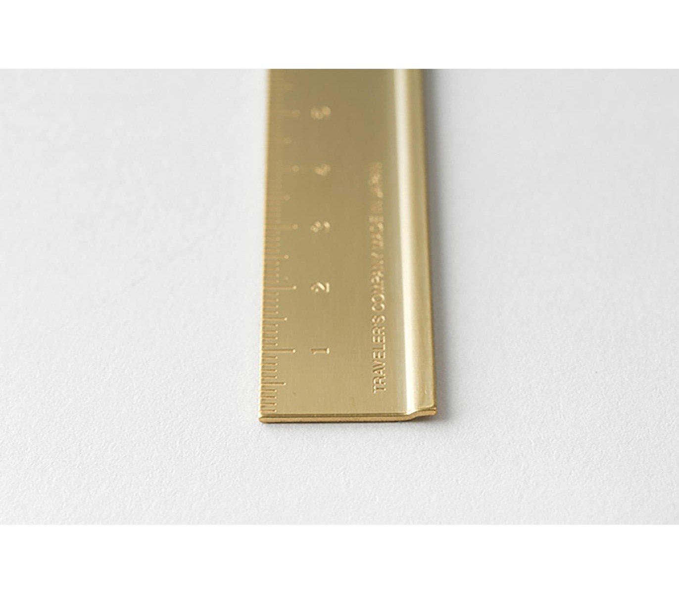 • Régua dourada com graduação em centímetros e inscrição BRASS